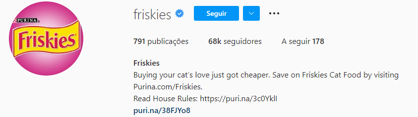 如果你是一个零售或电子商务品牌,考虑使用Instagram来增加你的客户名单,而不是试图立即进行销售。Friskies使用它的生物链接将流量带到他们的 “注册特别优惠 “页面,而不是直接链接。