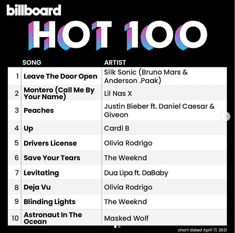 If we look at the top hits at The Billboard Hot 100, we can see that they are also very famous on TikTok. Songs like Leave The Door Open, by Silk Sonic or Drivers Licence, by Olivia Rodrigo, occupy the top5 after a boom on the artists’ TikTok Platforms.